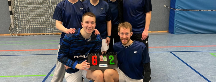 Die Herrendoppel mit Fabian/Bjarne und Vincent/Felix konnten ihre Spiele in nur zwei Sätzen für sich entscheiden und brachten uns die ersten Punkte. Erdenklich knapp mussten sich hingegen die Lauras im Damendoppel geschlagen geben. Dafür konnten ausnahmslos alle Einzel für uns als Siege verzeichnet werden. Das Mixed raubte zuletzt allen den Atem, da es im dritten Satz nochmals besonders knapp wurde. Leider fiel es nicht zu unseren Gunsten aus und es blieb bei einem guten 6:2 Sieg.