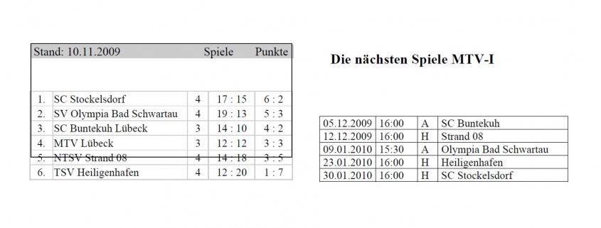 dem zweiten Platz mit einem Punkt Rückstand auf Schwarzenbek, aber auch nur einen Punkt vor den Nächstplatzierten Escheburg und Kaltenkirchen. Am 12.12. kommen die Schwarzenbeker nach Lübeck.