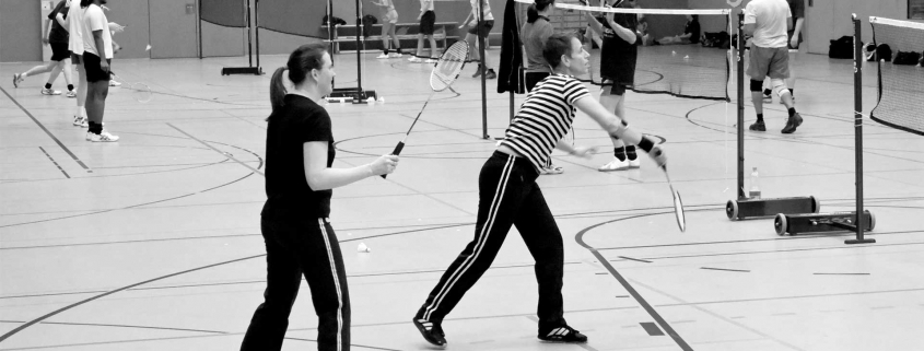 Schade eigentlich. Asiatische Talentscouts könnten live im Fernsehen das Geschehen in der St. Jürgen-Halle verfolgen. Wie wir unermüdlich auf den nur ca. 5 Gramm leichten Federball dreschen und ihn so auf weit über 100 hm/h beschleunigen – mit mehr oder weniger technischem Geschick. Wie wir unsere Gegner mit Netzrollern und Kantenschlägen zur Verzweiflung bringen – oder von denen zur selben gebracht werden. Wie der weiße Federball gegen das hell einfallende Sonnenlicht in der St. Jürgen-Halle nur erahnt werden kann – eine große Fensterfront zur Südseite ist wirklich sinnvoll. Wie einige Felder nicht genutzt werden können, weil Vorrichtungen anderer Turngeräte wie Ringe und Seile in die Spielfelder ragen. Wie wir mit der Nervenstärke eines Drahtseilakrobaten, mit der Reaktionsfähigkeit eines Tontaubenschützen und mit der Eleganz einer Gazelle (oder wie heißt das Tier mit dem langen Rüssel?) unsere Stärken ausspielen.