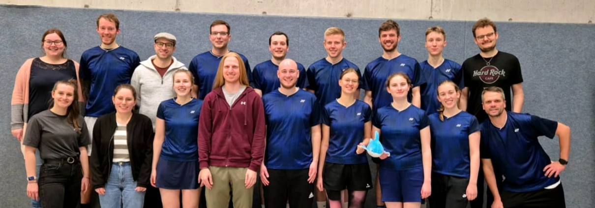 Parallel war die zweite Mannschaft im Stockelsdorf zu Gast. Hier konnten wir an den Erfolg vom Freitag anknüpfen. Im ersten Herrendoppel starteten Vincent und Alex direkt mit einem Dreisatzspiel, dass sie knapp abgeben mussten. Flo und Chris konnten das zweite Herrendoppel sicher für sich entscheiden. Auch Marit und Paula brauchten im Damendoppel einen Satz um ins Spiel zu kommen und konnten das Spiel nach einem zweiten Satz 27:25 im dritten Satz dicht machen. Weiter ging es mit dem Dameneinzel. Hier traf Marit in einem beidseits fehlerbehafteten Spiel das Feld häufiger als ihre Gegnerin und sicherte den nächsten Punkt. Alex hatte im zweiten Herreneinzel schwer gegen die saubere und platzierte Technik seines dazu noch laufstarken Gegners zu kämpfen. Trotz sehr starker Spielleistung ging das Spiel eindeutig an den Stockelsdorfer. Chris hatte im dritten Einzel ein vergleichsweise leichtes Los, lies sich davon aber nicht beeinflussen und spielte die Sätze konsequent zu Ende. Das erste Herreneinzel machte Vincent ähnlich spannend wie sein Doppel. Nachdem er ins Spiel gekommen war, holte er den Punkt in drei Sätzen und damit den Mannschftssieg mit einem Zwischenstand 5:2. Wie so oft stand das Mixed zum Schluss aus. Paula und Flo zeigten wirklich starke Leistung, mussten das Spiel aber in zwei verlängerten Sätzen abgeben. Das tat der Freude über das gewonnene Spiel keinen Abbruch und so sicherten wir uns die nächsten wichtigen Tabellenpunkte.